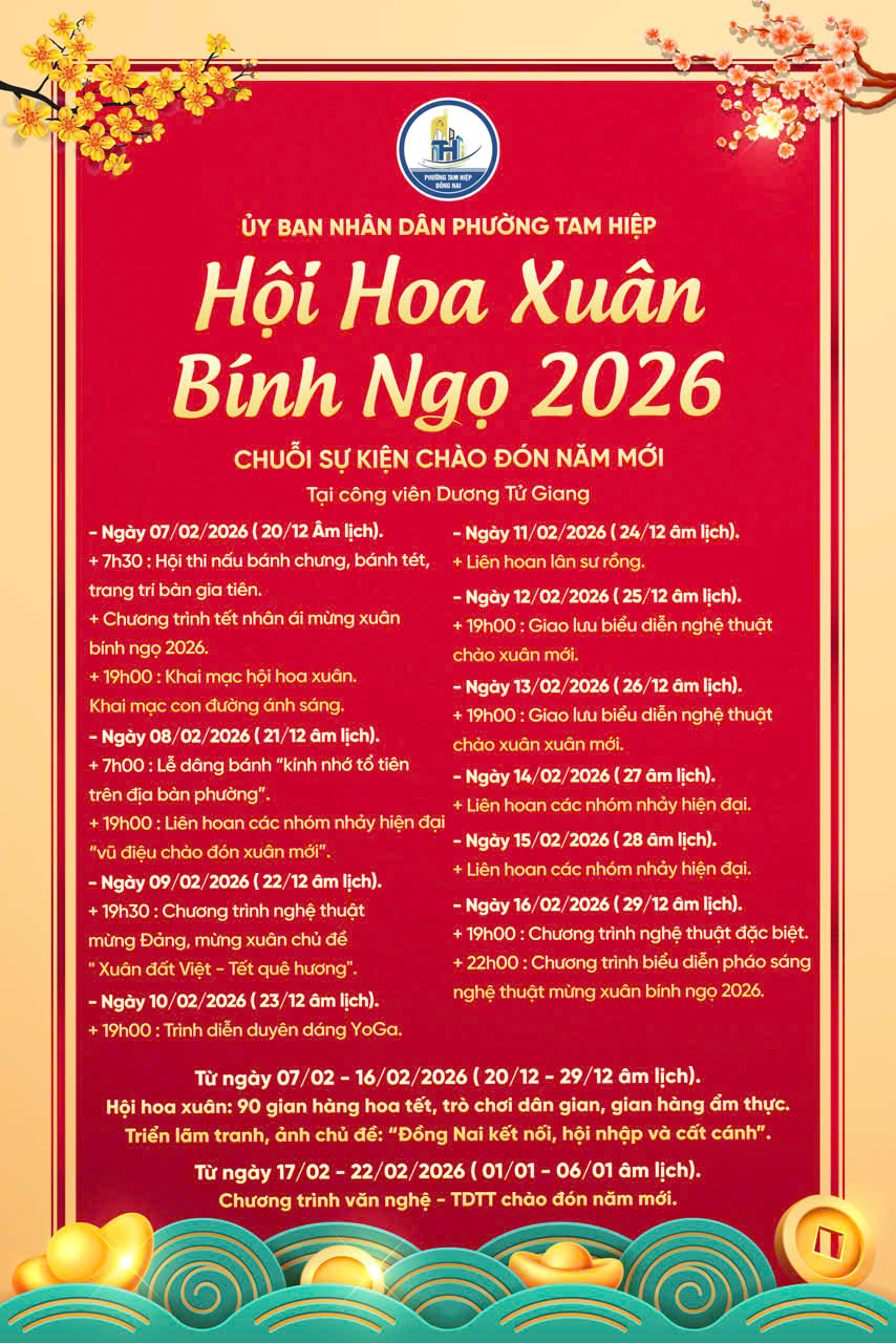 KHAI MẠC KỲ THI TUYỂN DỤNG VIÊN CHỨC TRUNG TÂM DỊCH VỤ TỔNG HỢP PHƯỜNG TAM HIỆP NĂM 2026Sáng ngày 11/02/2026, tại Trường Chính trị tỉnh Đồng Nai, Ủy ban nhân dân phường Tam Hiệp long trọng tổ chức...