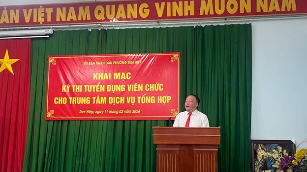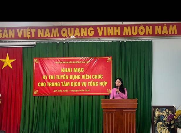 Sáng ngày 11/02/2026, tại Trường Chính trị tỉnh Đồng Nai, Ủy ban nhân dân phường Tam Hiệp long trọng tổ chức khai mạc Kỳ thi tuyển dụng viên chức năm 2026 cho Trung tâm Dịch vụ tổng hợp phường Tam Hiệp. Kỳ thi được triển khai thực hiện theo Kế hoạch số 106/KH-UBND ngày 21/11/2025 của UBND phường Tam Hiệp về việc tuyển dụng viên chức năm 2026.