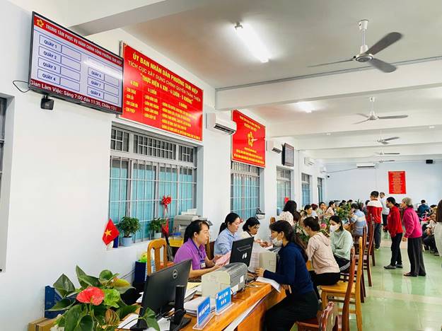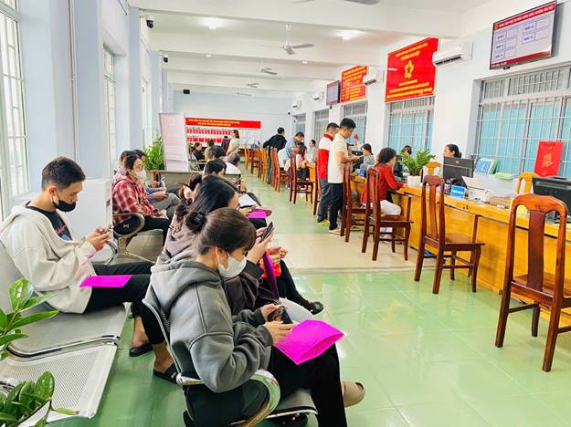 Khung cảnh người dân đang làm thủ tục hành chính tại TT PV HCC phường Tam Hiệp nguồn Hoàng Anh