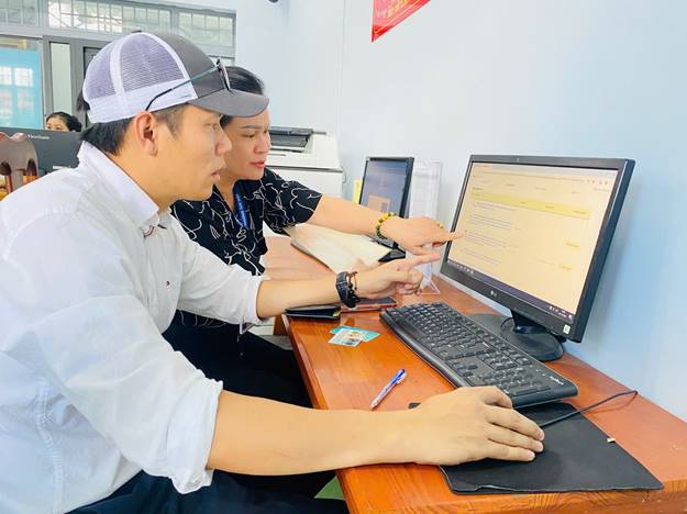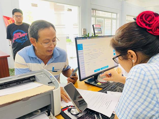 Bà Lê Thị Hoa – Phó Giám đốc TT PV HCC phường hỗ trợ hướng dẫn người dân làm thủ tục hành chính trên “Cổng dịch vụ công quốc gia” đăng nhập bằng tài khoản Vneid mức độ 2 nguồn Hoàng Anh
