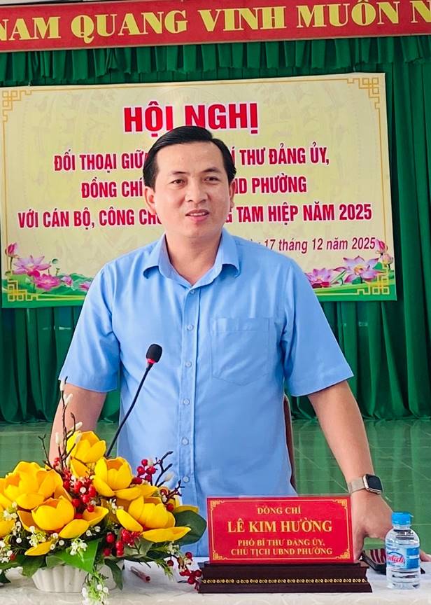 Ông Lê Kim Hường – Phó Bí thư, Chủ tịch UBND đối thoại trực tiếp cán bộ, công chức phường Tam Hiệp nguồn Hoàng Anh