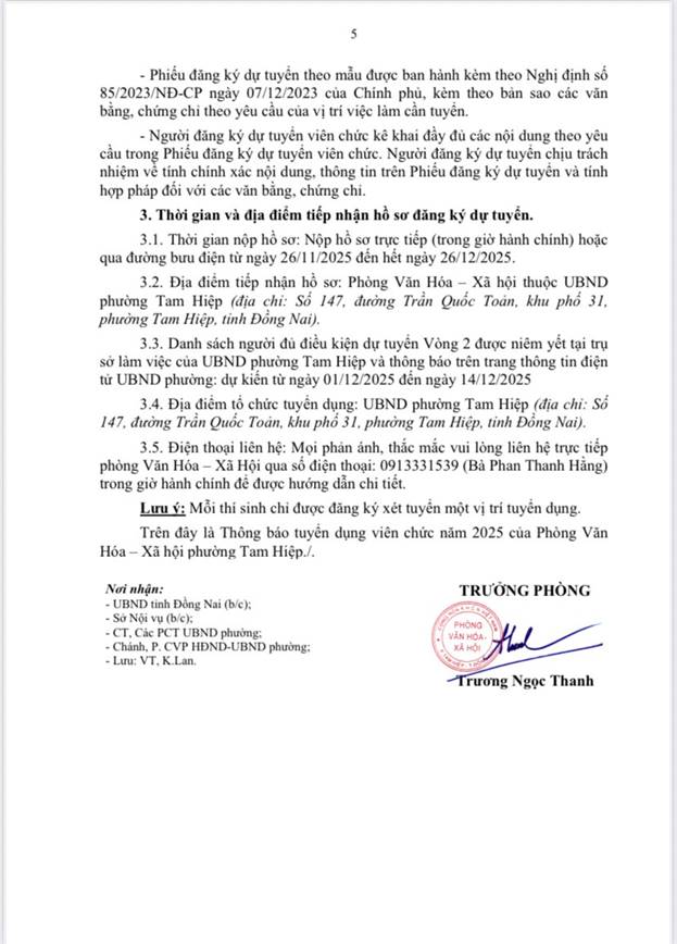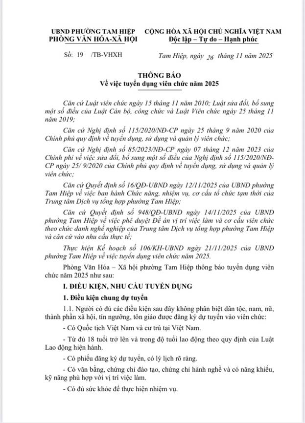 Thông báo về việc tuyển dụng viên chức năm 2025