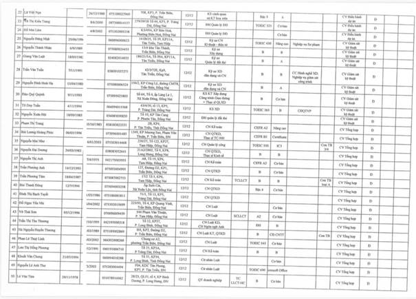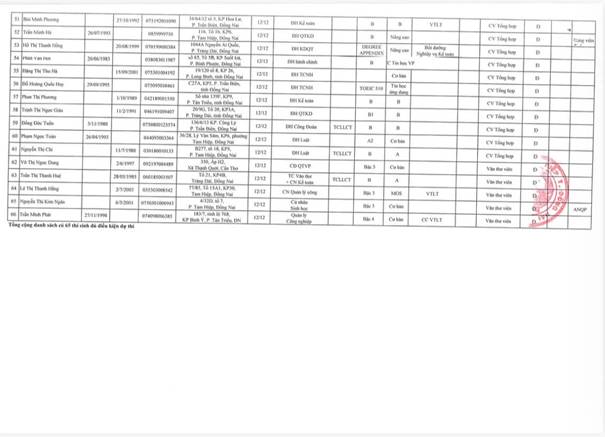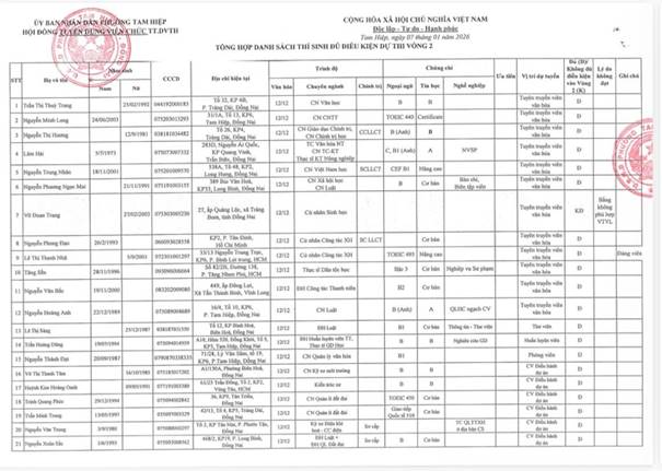UBND phường Tam Hiệp thông báo Kết quả kiểm tra điều kiện, tiêu chuẩn dự tuyển viên chức vòng 1