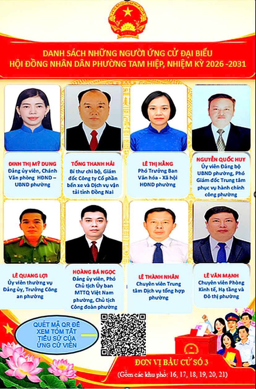 Danh sách những người ứng cử Hội đồng Nhân dân phường Tam Hiệp, nhiệm kỳ 2026 - 2031 - Đơn vị bầu cử số 3