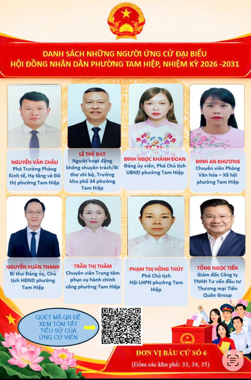 Danh sách những người ứng cử Hội đồng Nhân dân phường Tam Hiệp, nhiệm kỳ 2026 - 2031 - Đơn vị bầu cử số 6