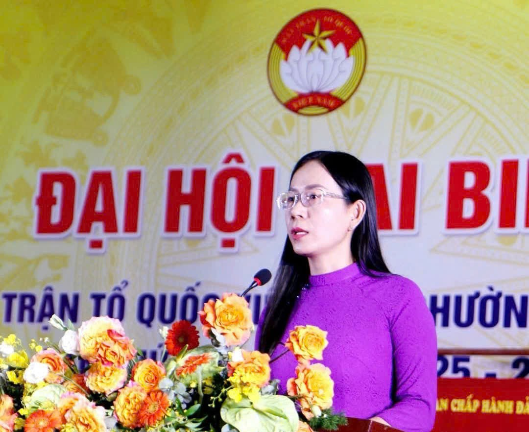 Phát biểu chỉ đạo tại Đại hội, đồng chí Lê Thị Thanh Loan – TUV -Phó chủ tịch Uỷ ban Mặt trận Tổ quốc (MTTQ) Việt Nam tỉnh Đồng Nai - Chủ tịch Hội Liên hiệp phụ nữ Tỉnh biểu dương những kết quả nổi bật mà MTTQ Việt Nam phường đạt được trong thời gian qua, đồng thời đề nghị MTTQ phải sâu sát với nhân dân tuyên truyền bằng những mô hình thực tiễn, sự gương mẫu của cán bộ, đặc biệt cần sự tạo sự đồng thuận đối với các dự án kinh tế xã hội trọng điểm của địa phương. Khơi dậy và phát huy mạnh mẽ tinh thần sáng tạo, tự quản của nhân dân đưa phong trào thi đua yêu nước vào chiều sâu không chỉ dừng ở xây dựng khu dân cư văn hóa mà phải hướng tới khu dân cư tự quản, đoàn kết, ấm no, hạnh phúc và cần nhân rộng các mô hình tự quản về an ninh trật tự, bảo vệ môi trường, an toàn giao thông, khuyến khích khởi nghiệp và phát triển kinh tế hộ gia đình kinh tế tập thể để mỗi người dân đã sẽ trở thành một chủ thể tích cực trong phát triển kinh tế của địa phương. Coi công tác an sinh xã hội, chăm lo cho người nghèo, gia đình chính sách là nhiệm vụ thường xuyên, trọng tâm, cần chuyển từ hỗ trợ mang tính thời điểm sang học sinh kế một cách bền vững.